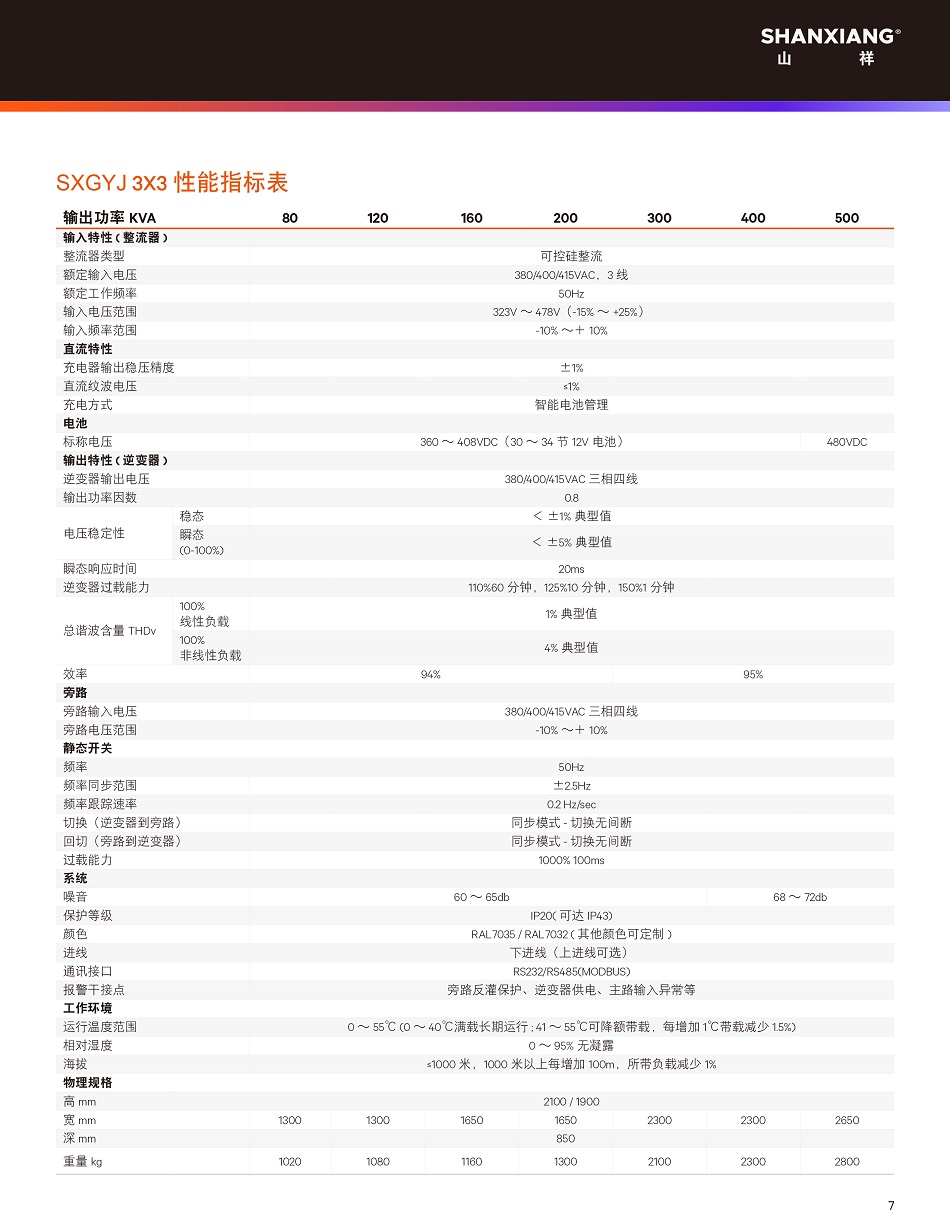 山祥SXGYJ系列80-500K工业级UPS电源