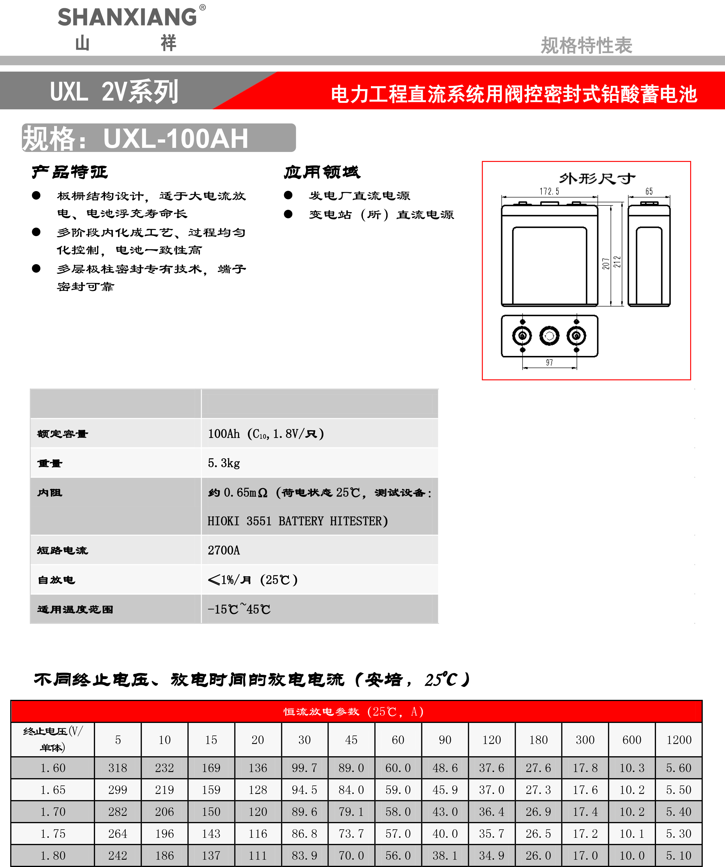山祥UXL-100AH蓄电池